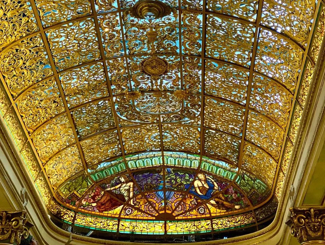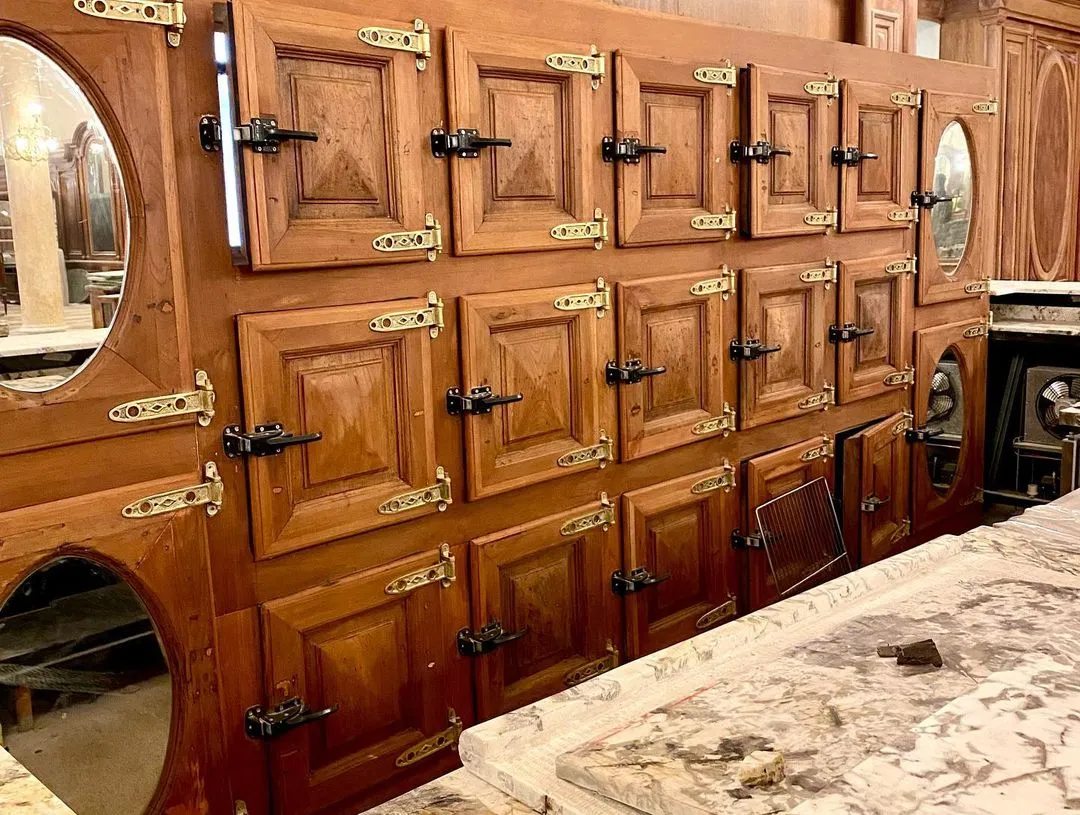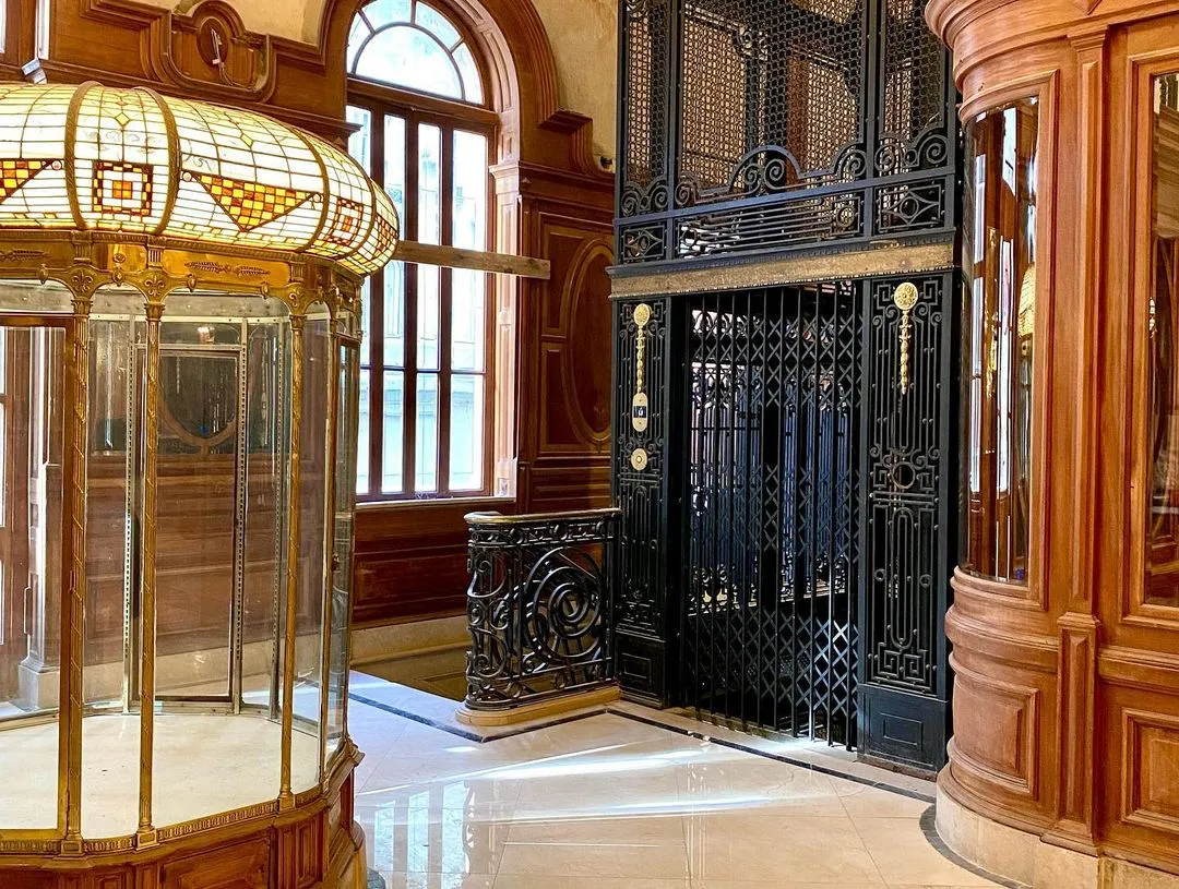 El local fue realizado con materiales y elementos importados de Europa: arañas francesas, sillones checoslovacos, vitrales italianos, boiserie de roble de Eslavonia tallada artesanalmente, mármoles para las escaleras, cristal biselado para las vitrinas, bronces, hierro negro, etc.